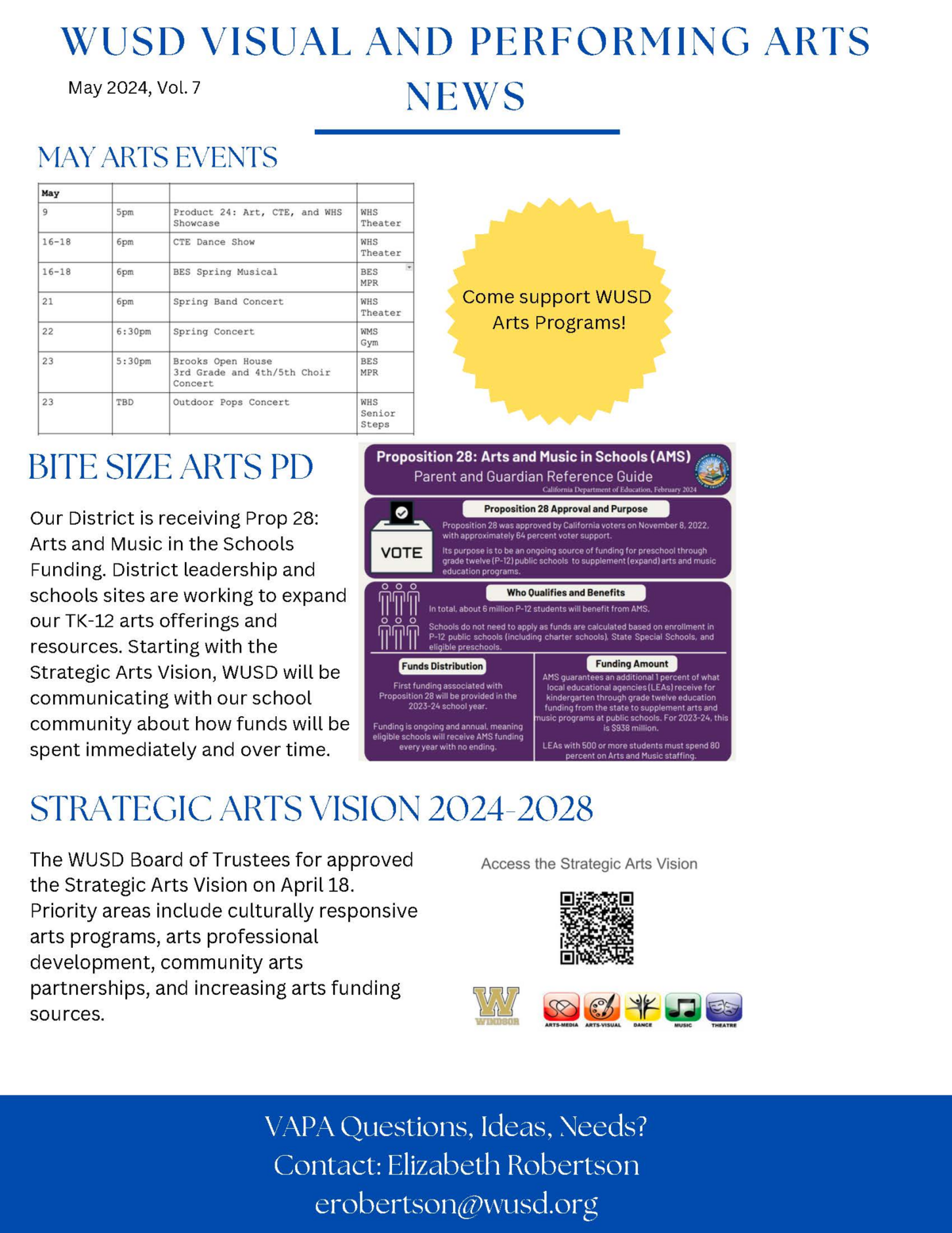 Yearbooks have arrived! Pre-purchased books and accessories will be distributed on Tuesday, May 28th, during first period. Copies can still be purchased on the student store website or in person, after school on Tuesday in the front office for $55. There are only 15 copies left! If you have any questions, please contact ddiaz@wusd.org.