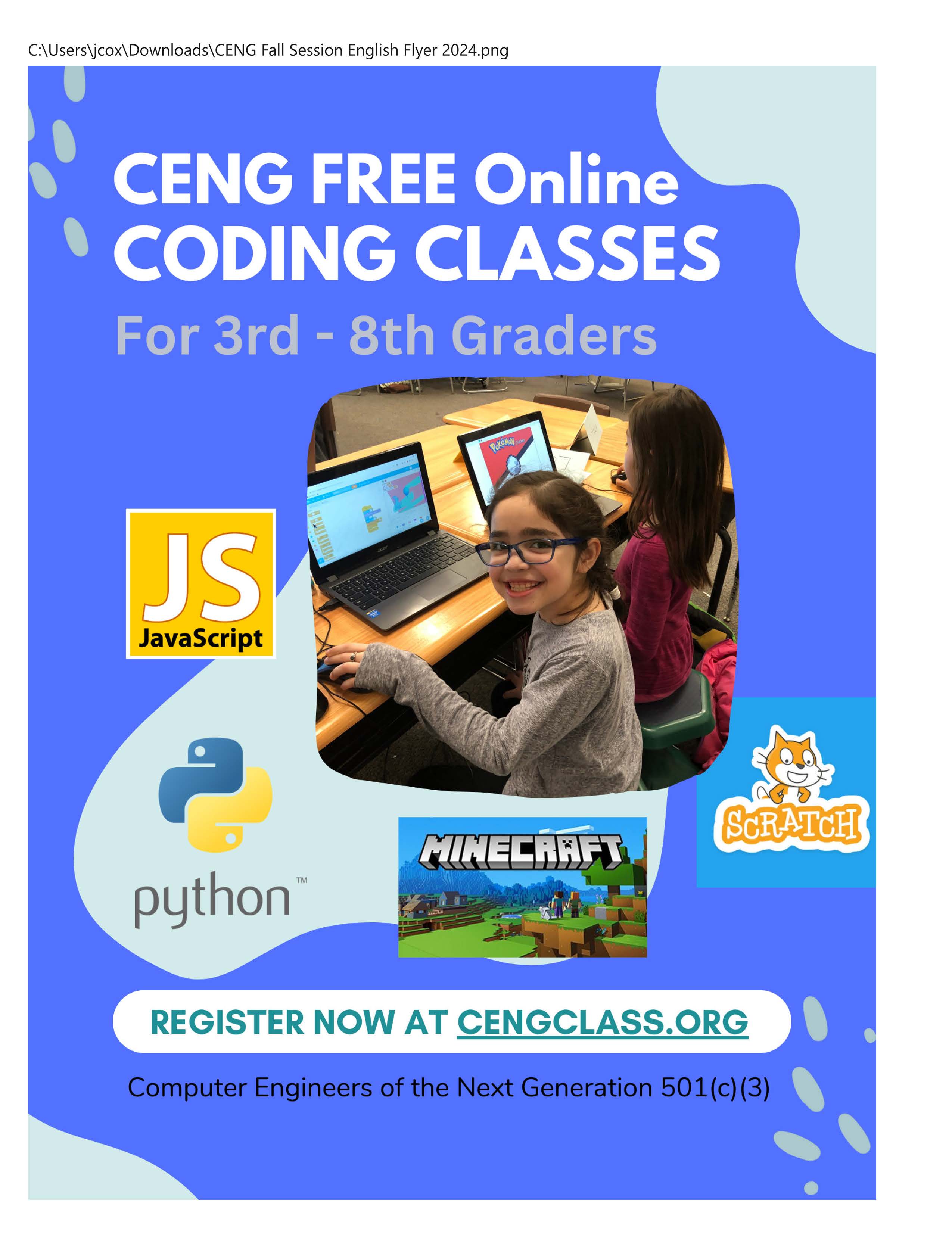 CENG's Free Fall Online Coding Classes – Registration Now Open / Clases de codificación en línea gratuitas de otoño de CENG: la inscripción ya está abierta