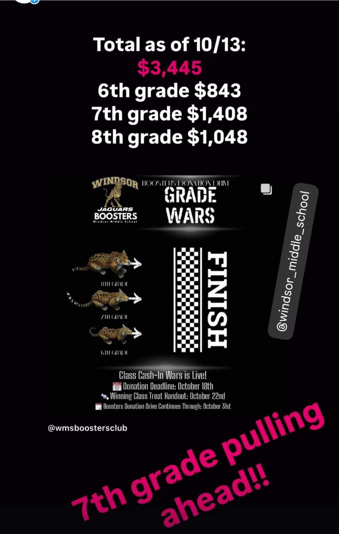 6th, 7th, and 8th graders are competing against each other to see who can raise the most for our Boosters Donation Drive!